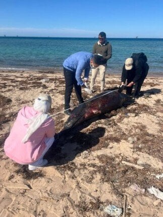 أشارت الوزيرة إلى أنه تم تلقي بلاغ من محميات البحر الأحمر بوزارة التنمية المحلية والبيئة حول وجود درفيل نافق في منطقة الموظفين خلف نادي الصيد بمدينة رأس غارب. وعليه، تم تشكيل فريق من باحثي ومراقبي محميات البحر الأحمر للانتقال إلى الموقع وإجراء الفحوصات اللازمة للوقوف على حالة الكائن البحري ومعرفة أسباب النفوق.